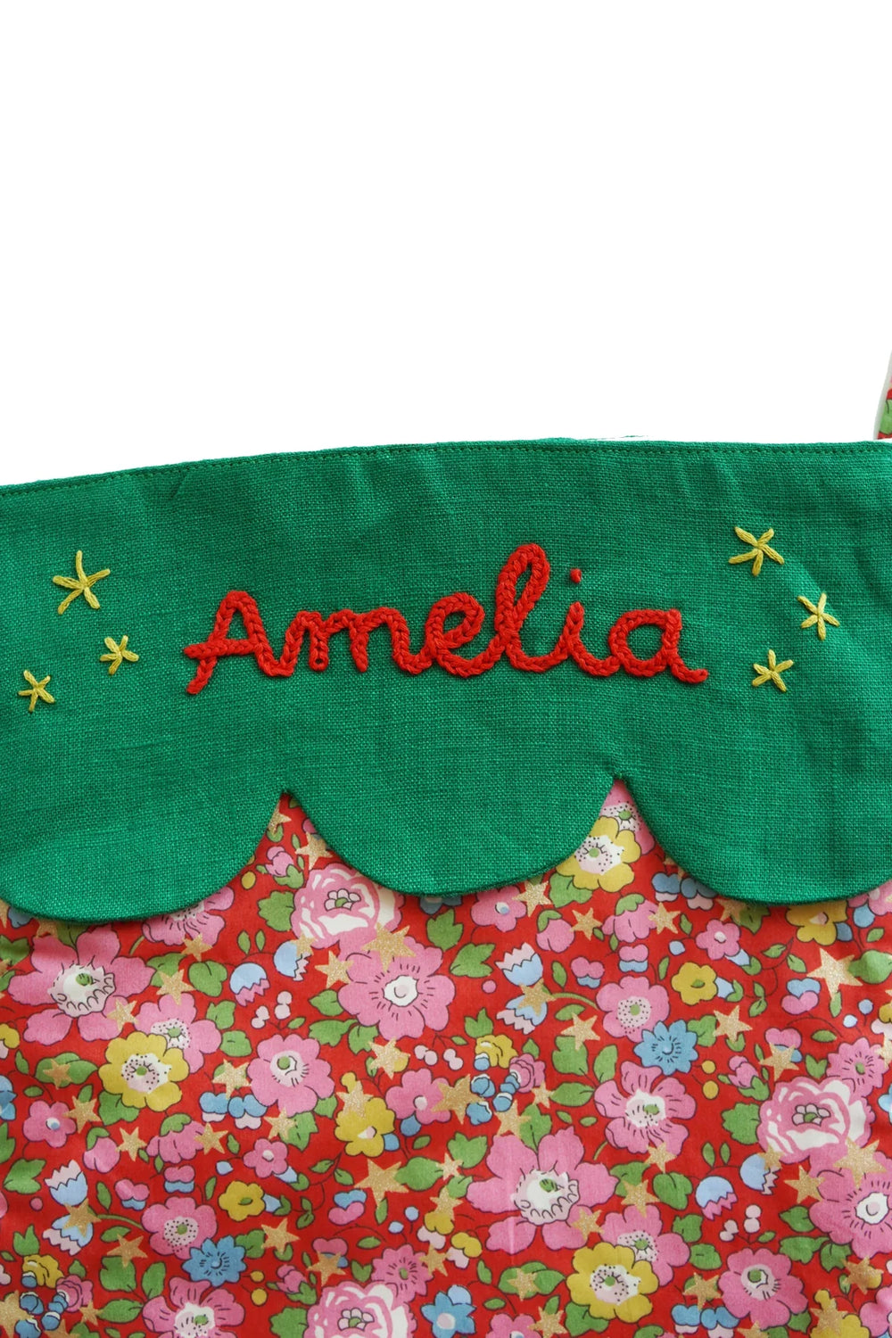 Coco & Wolf x Polly Wren Studios Embroidered Christmas Stocking made with Liberty Fabric BETSY STAR