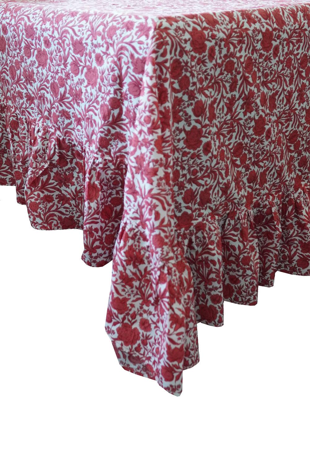 Ruffle Edge Tablecloth made with Liberty Fabric SAMBOURNE RED