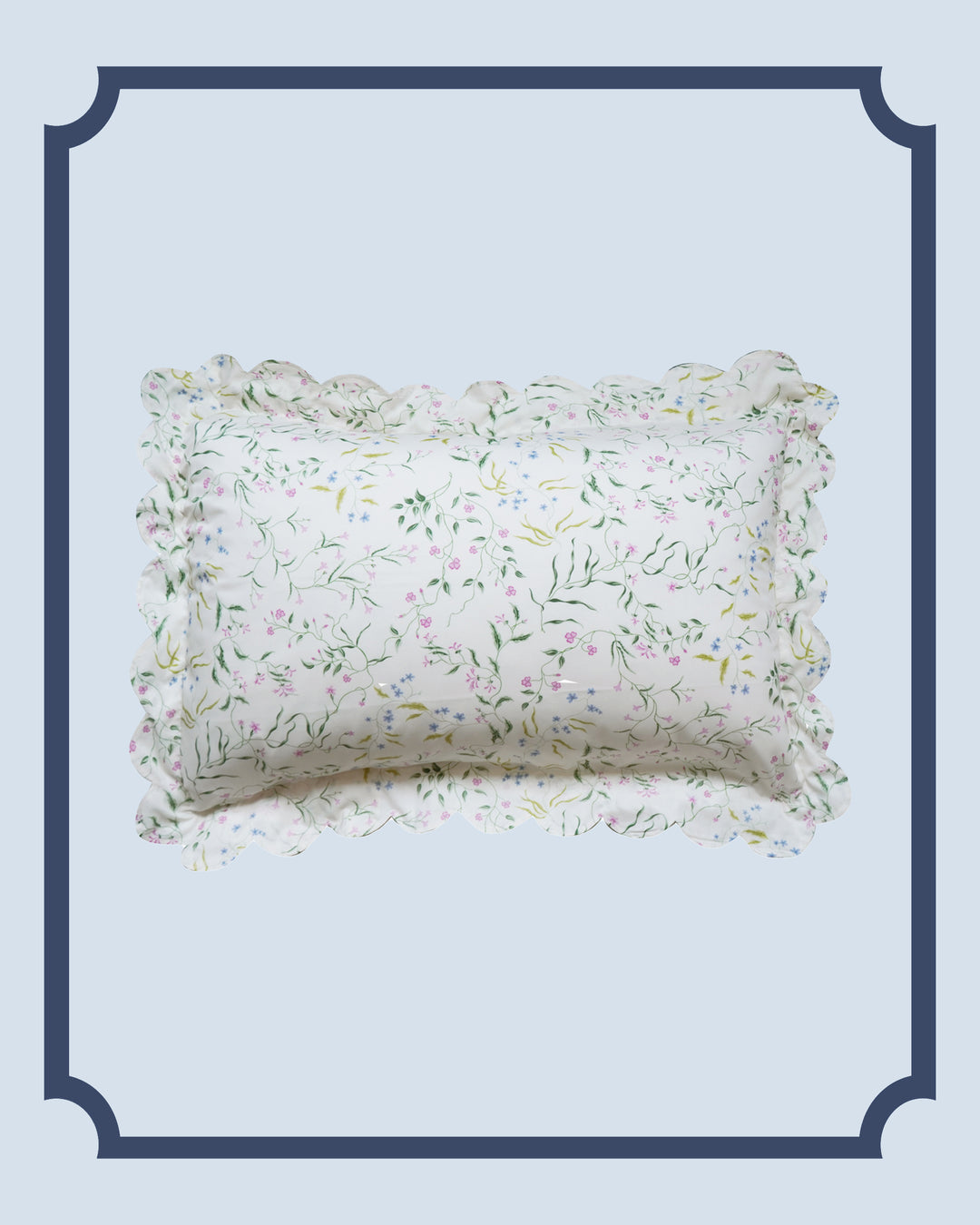 Bridgerton Scallop-Edge Pillowcase made with Liberty Fabric BOW BOUQUET BLUE