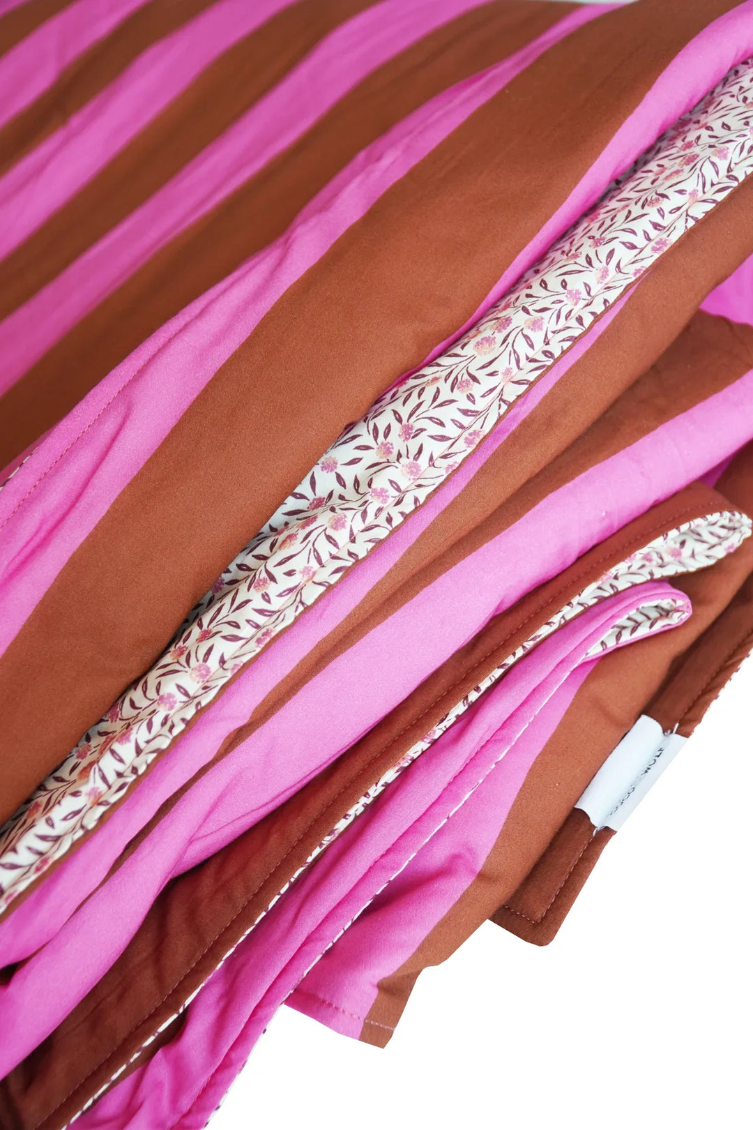 Reversible Stitch Border Bedspread made with Liberty Fabric VACATION STRIPE & MYRTLE