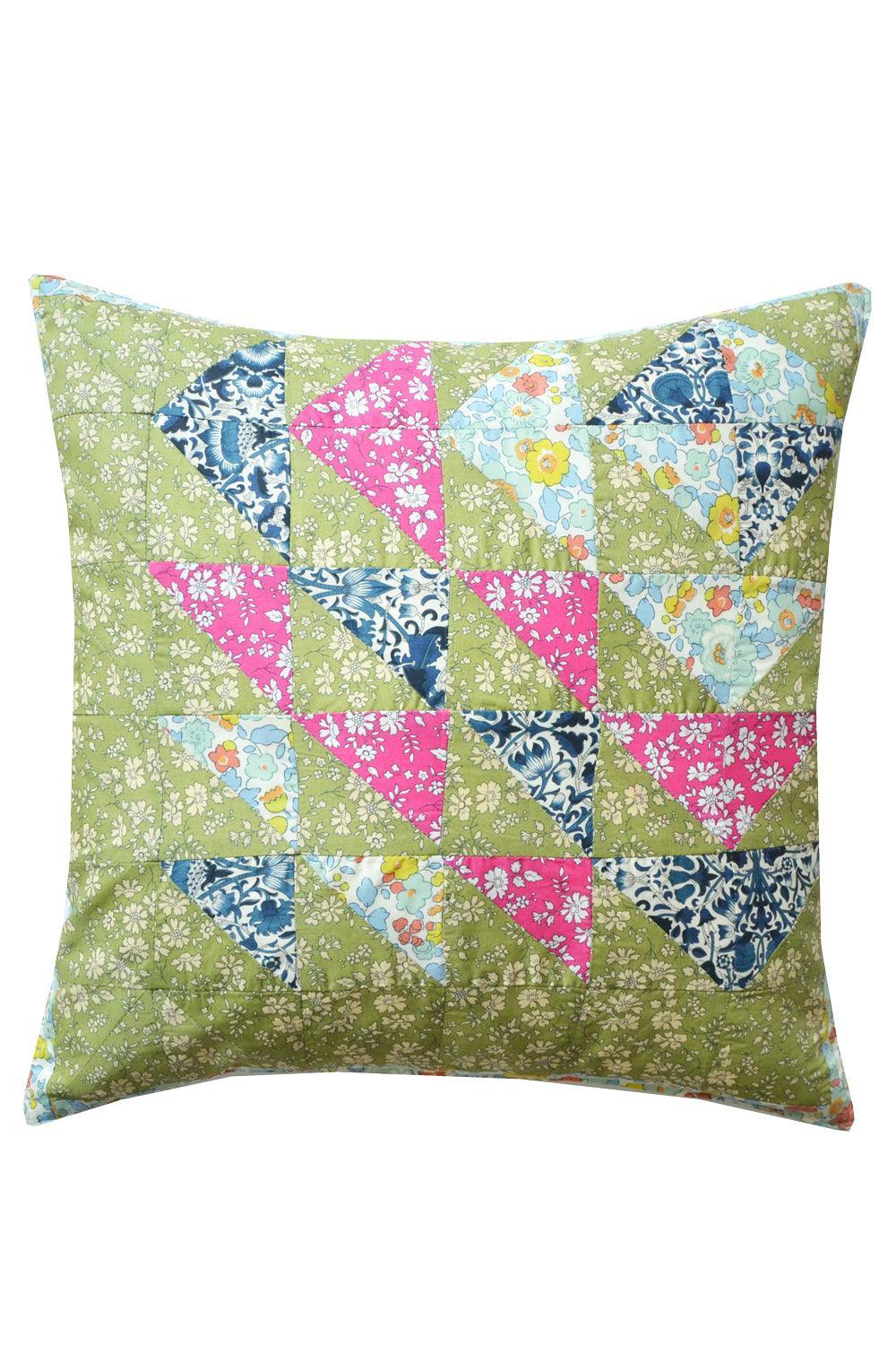 Patchwork Cushion made with Liberty Fabric CAPEL PISTACHIO, LODDEN & BETSY SAGE