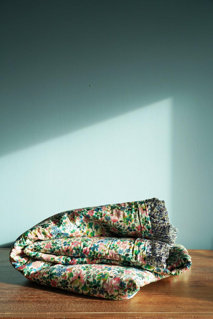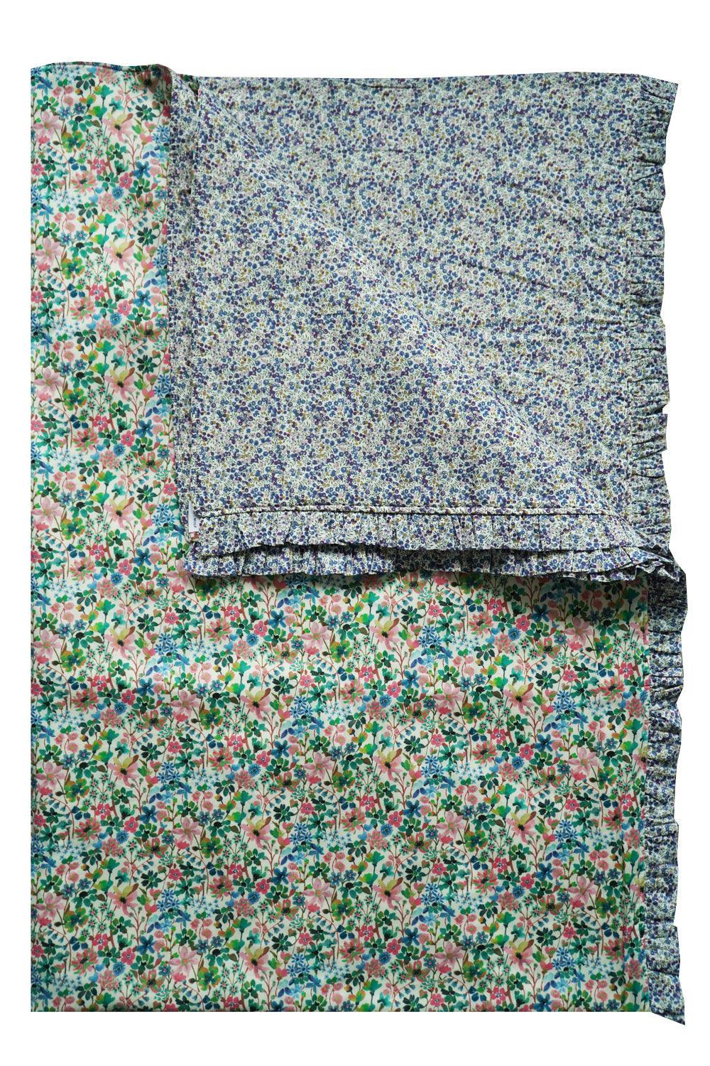 Reversible Ruffle Edge Bedspread made with Liberty Fabric DREAMS OF SUMMER & WILTSHIRE BUD