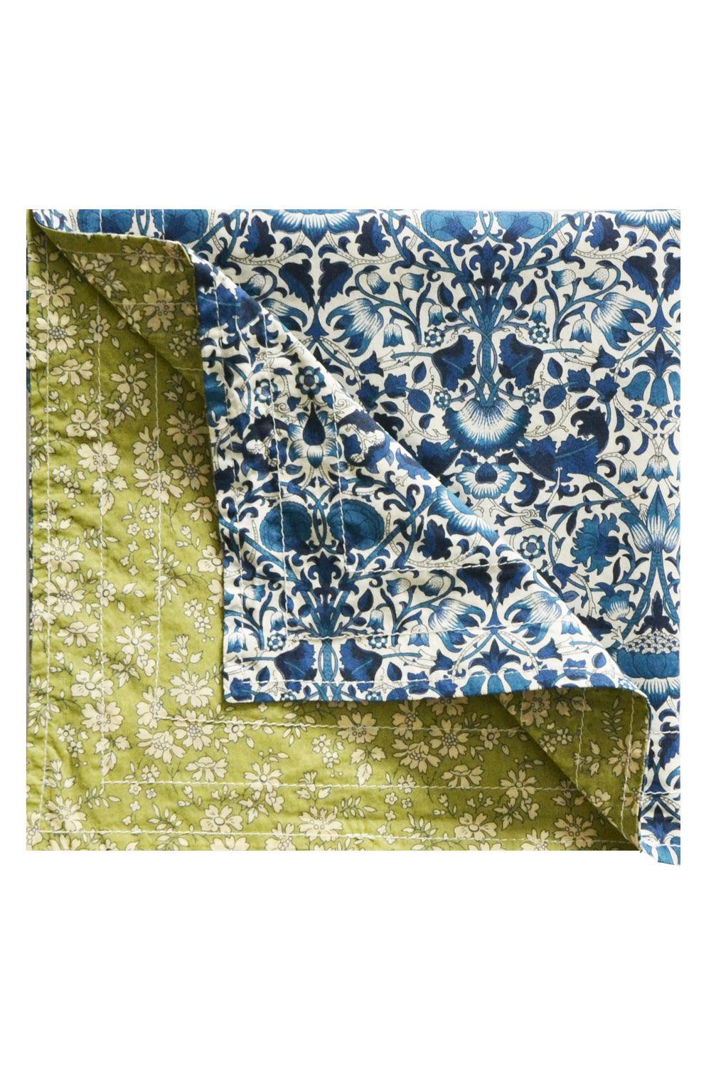 Reversible Stitch Napkin Set made with Liberty Fabric LODDEN NAVY & CAPEL PISTACHIO