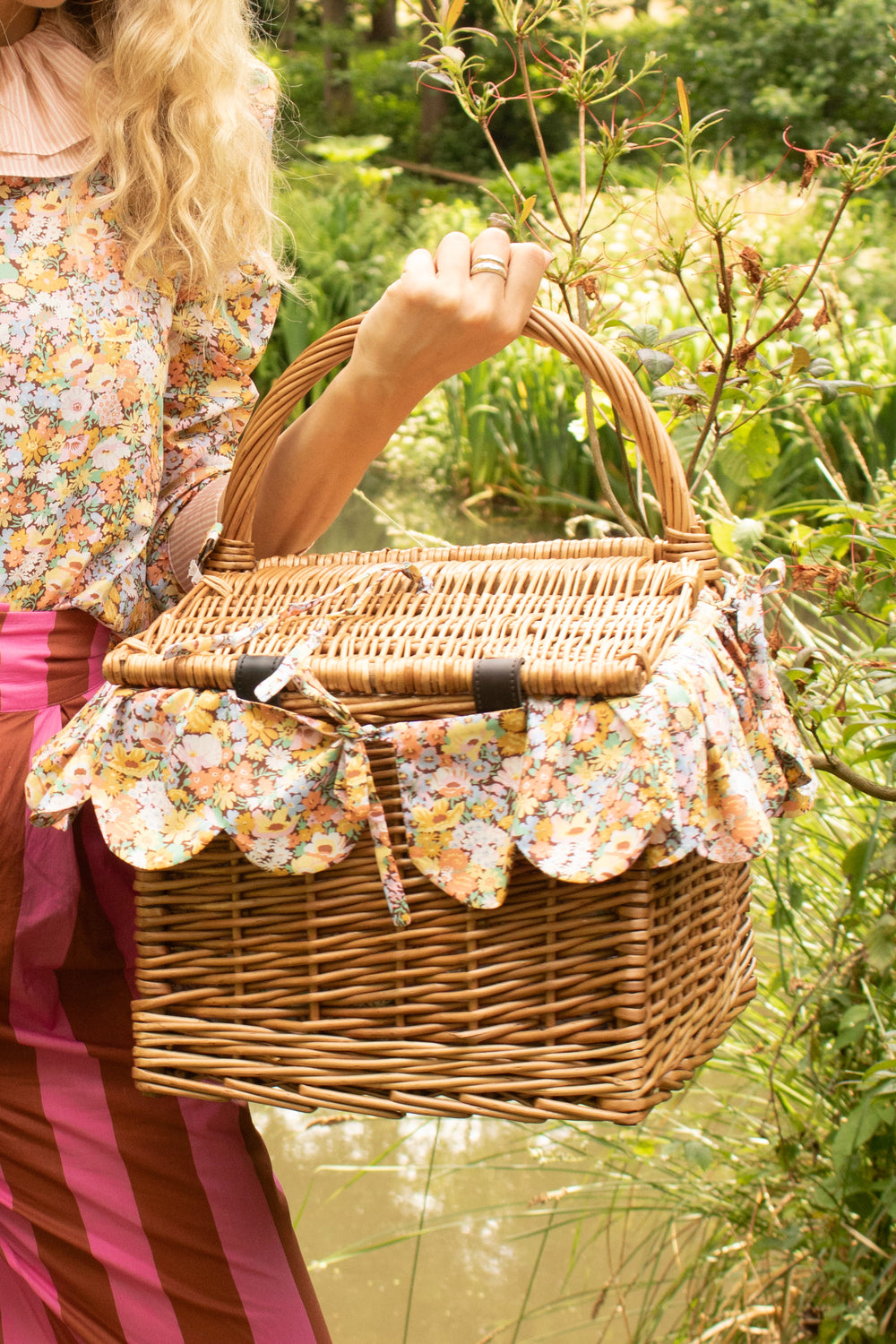 Coco & Wolf × O Pioneers Rectangular Picnic Basket Hamper made with Liberty Fabric THORPE