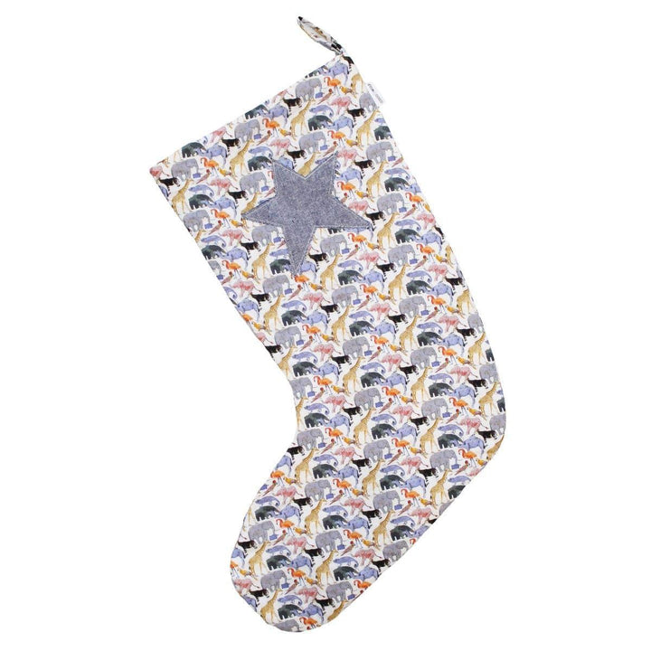 Christmas Stocking made with Liberty Fabric QUEUE FOR THE ZOO