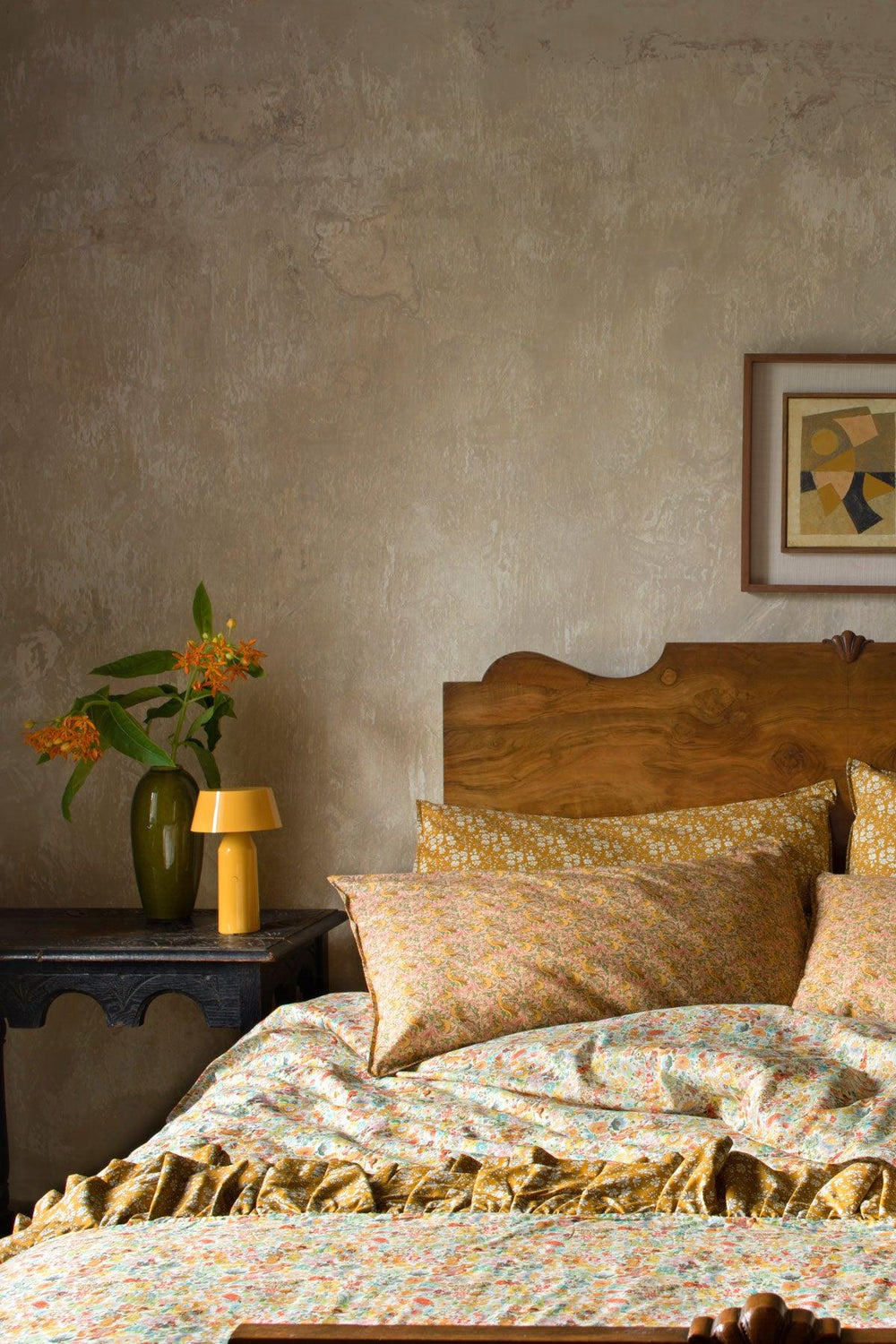 Gathered Edge Pillowcase made with Liberty Fabric CAPEL MUSTARD - Coco & Wolf