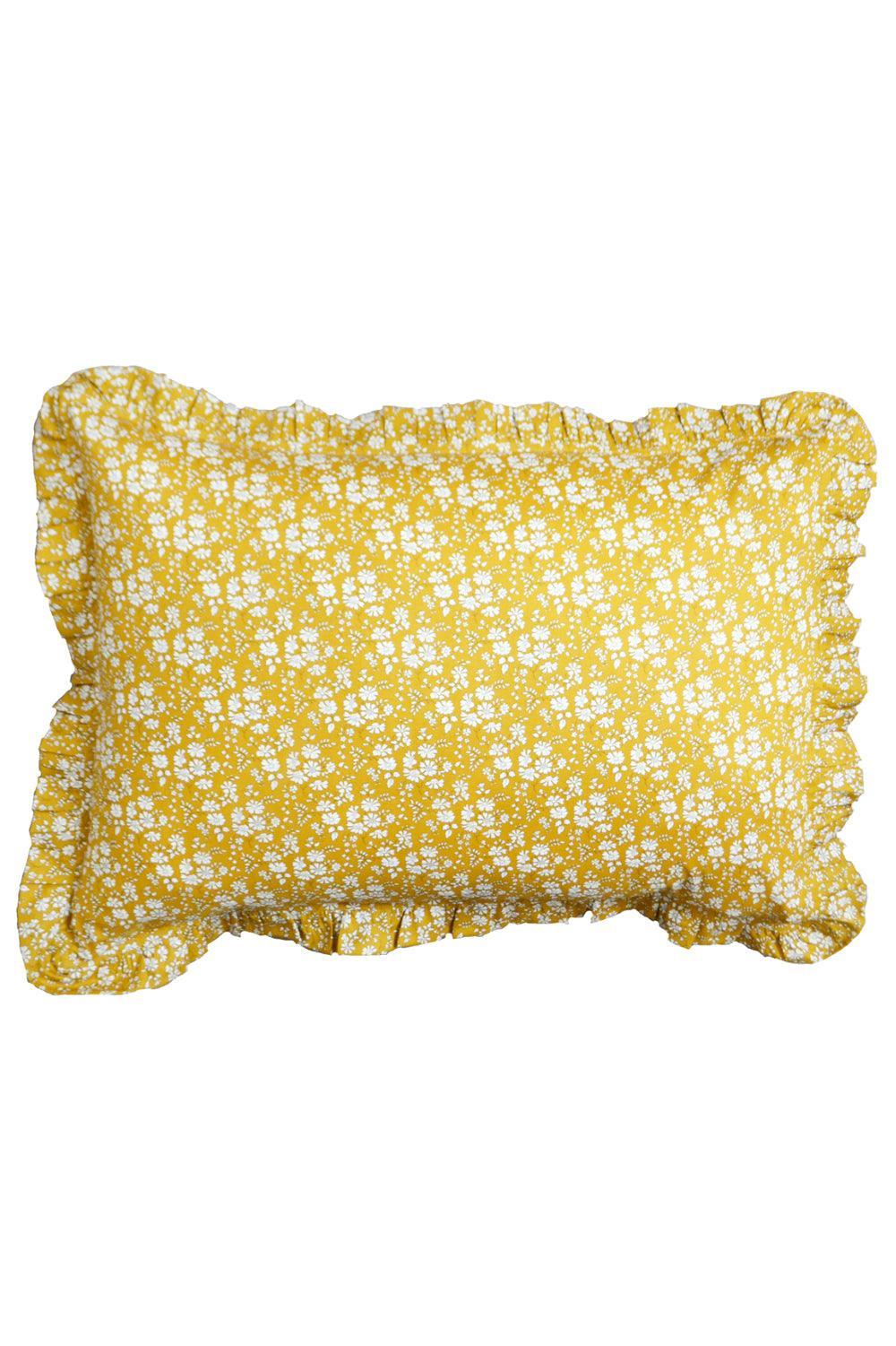 Frill Edge Pillowcase made with Liberty Fabric CAPEL MUSTARD