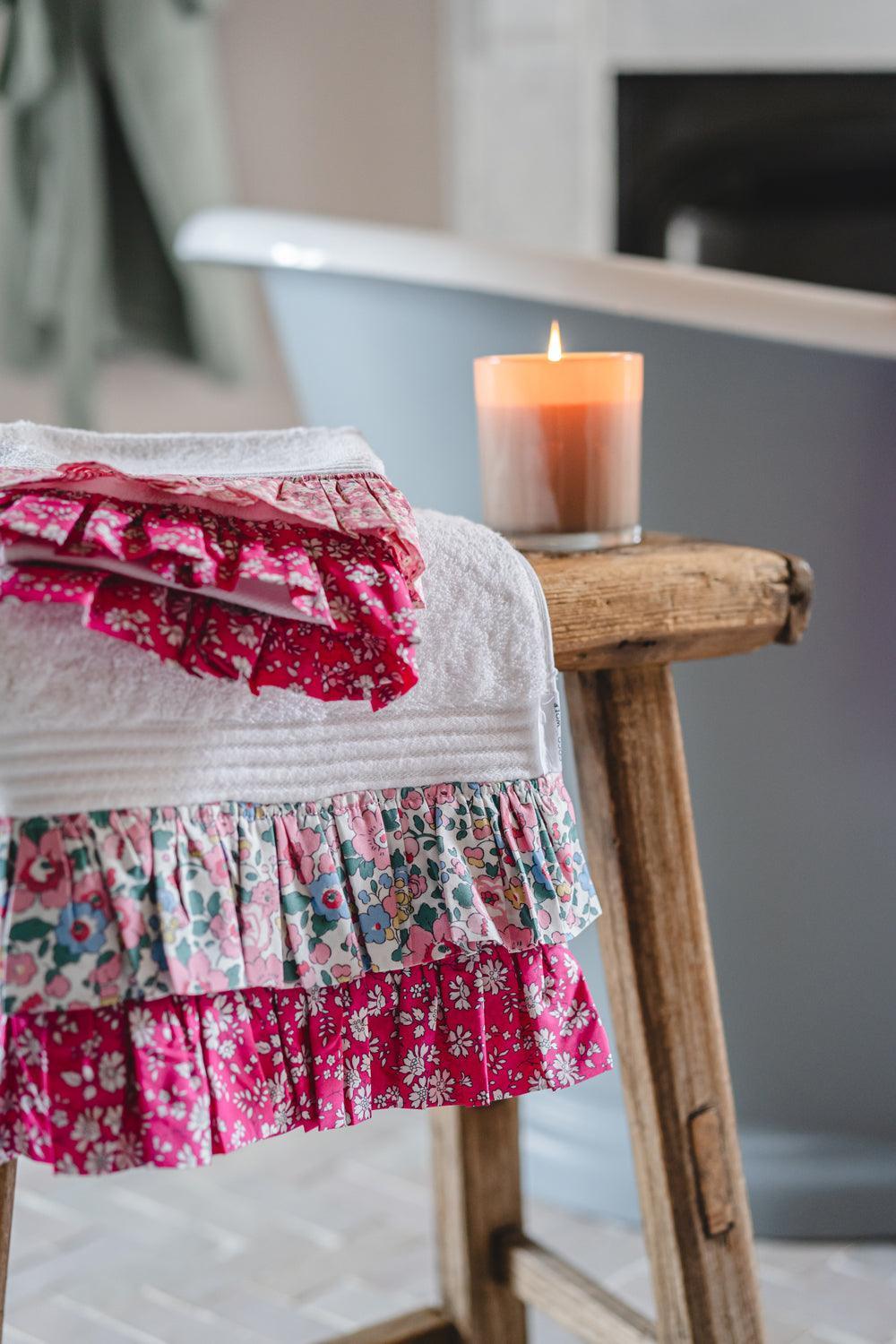 リバティファブリックを使用したフリルエッジタオル MITSI VALERIA & CAPEL FUCHSIA PINK