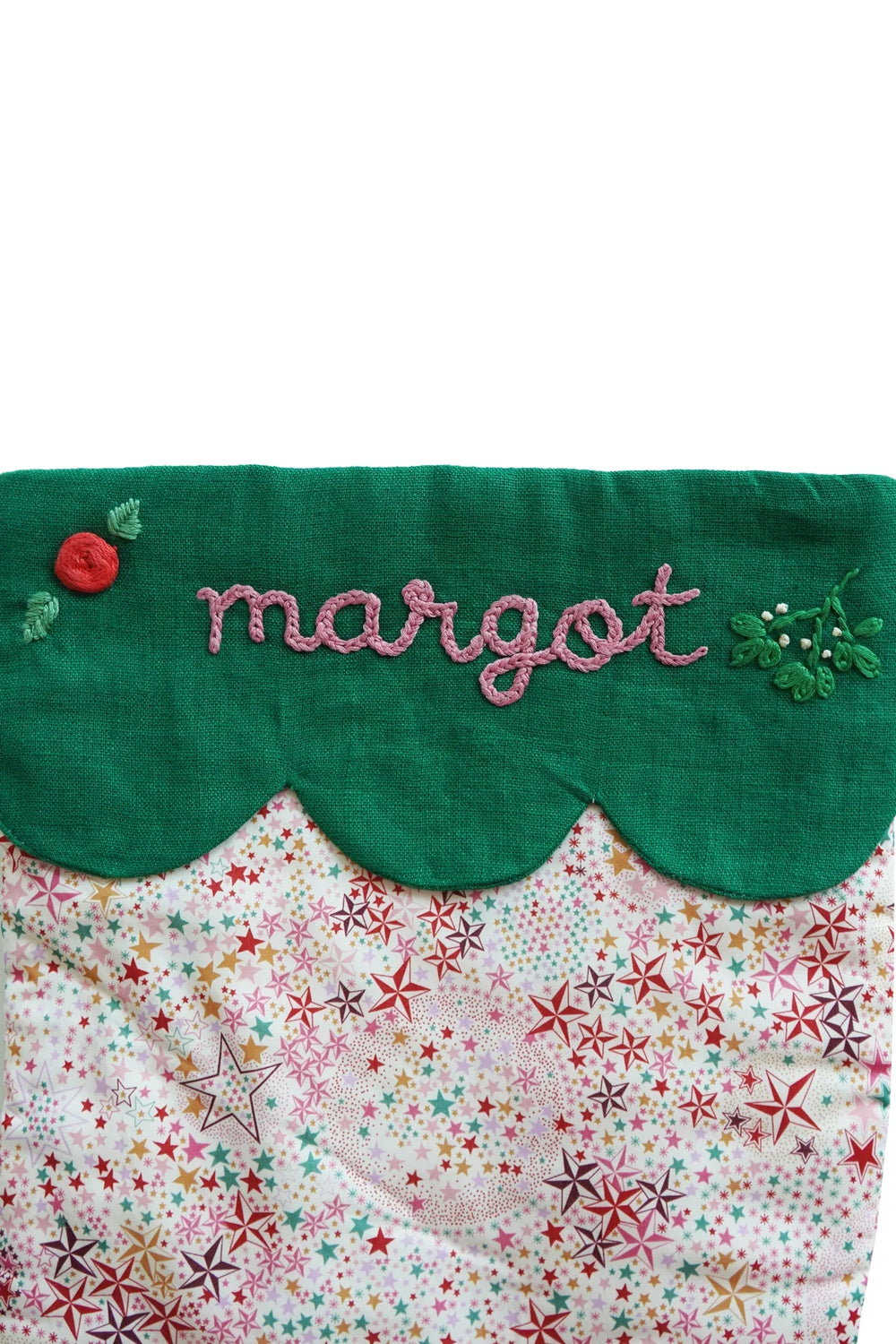 Coco & Wolfの美しいクリスマスストッキングは、リバティプリントのタナローン®コットンを使用したハンドメイドです。無地のタナローン®コットンで裏地を全面に施し、薄い綿わたでキルティング加工を施したこのリバティファブリックストッキングは、驚くほど柔らかく、家宝のような品質で、世代を超えて受け継ぐのに最適です。